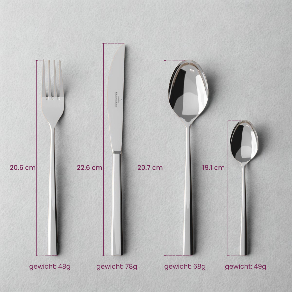 Egal, ob Sie einen kleinen Haushalt führen oder eine stilvolle Ergänzung zu Ihrem vorhandenen Besteck suchen, das Villeroy & Boch Piemont Besteckset bietet die perfekte Balance aus Design, Funktionalität und Langlebigkeit. Ergänzen Sie Ihre Küche mit diesem Set und genießen Sie bei jeder Mahlzeit einen Hauch von Luxus.